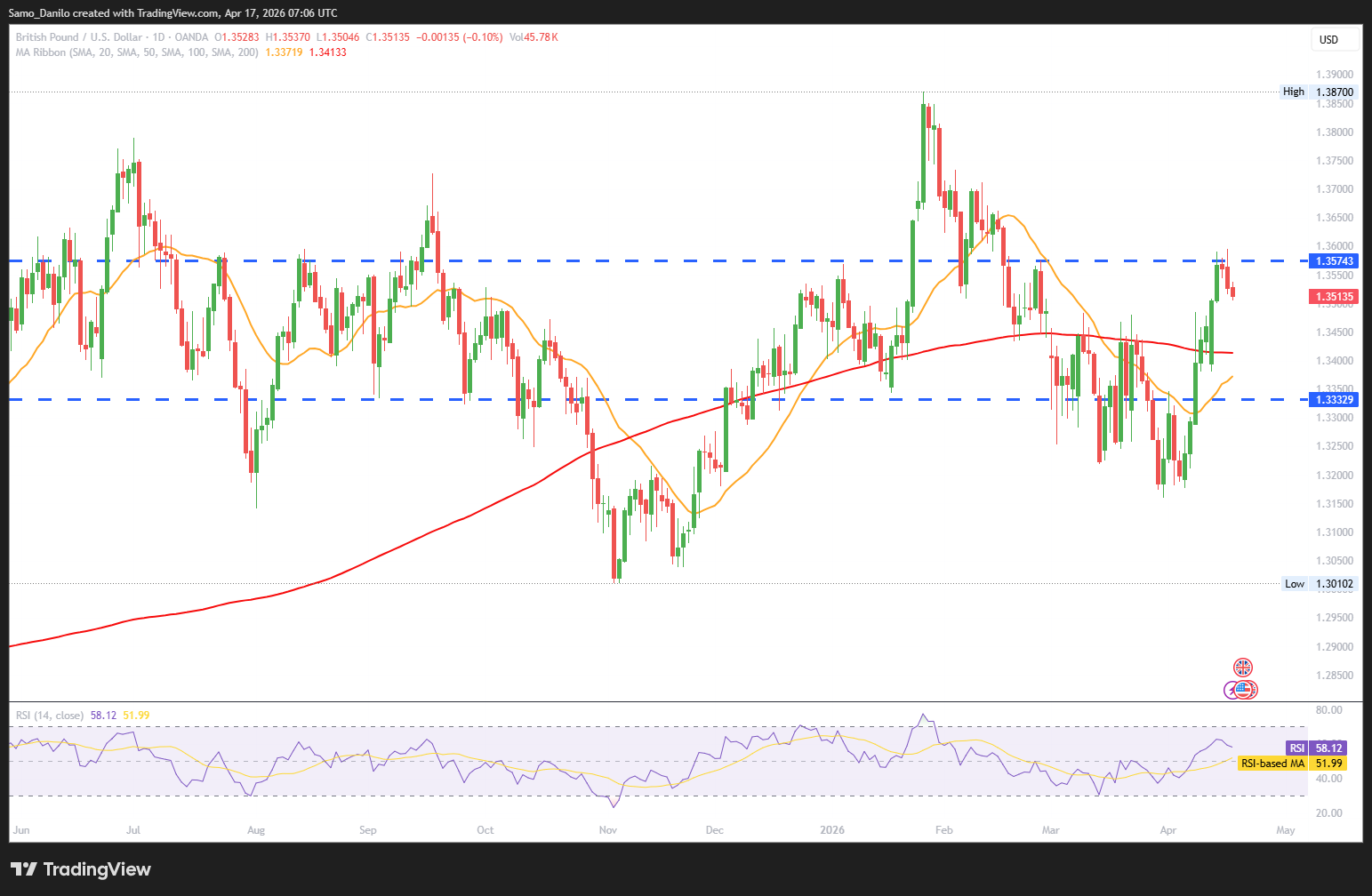 - GBP/USD Price: GBP/USD is declining for the third consecutive session, trading near the 1.3500 level. This sustained weakness indicates growing bearish sentiment, with sellers maintaining control in the short term.