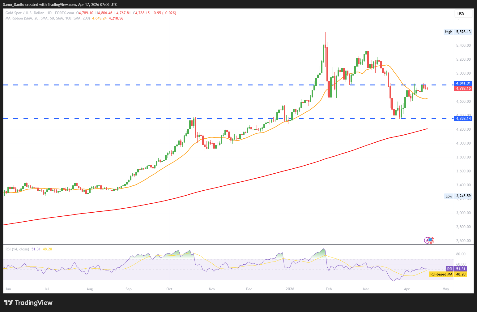 - XAU/USD Price: Gold continues to trade in a tight range around the $4,800 level, showing little net movement. This consolidation phase indicates a balance between bullish and bearish forces, with traders awaiting clearer macro or geopolitical signals.