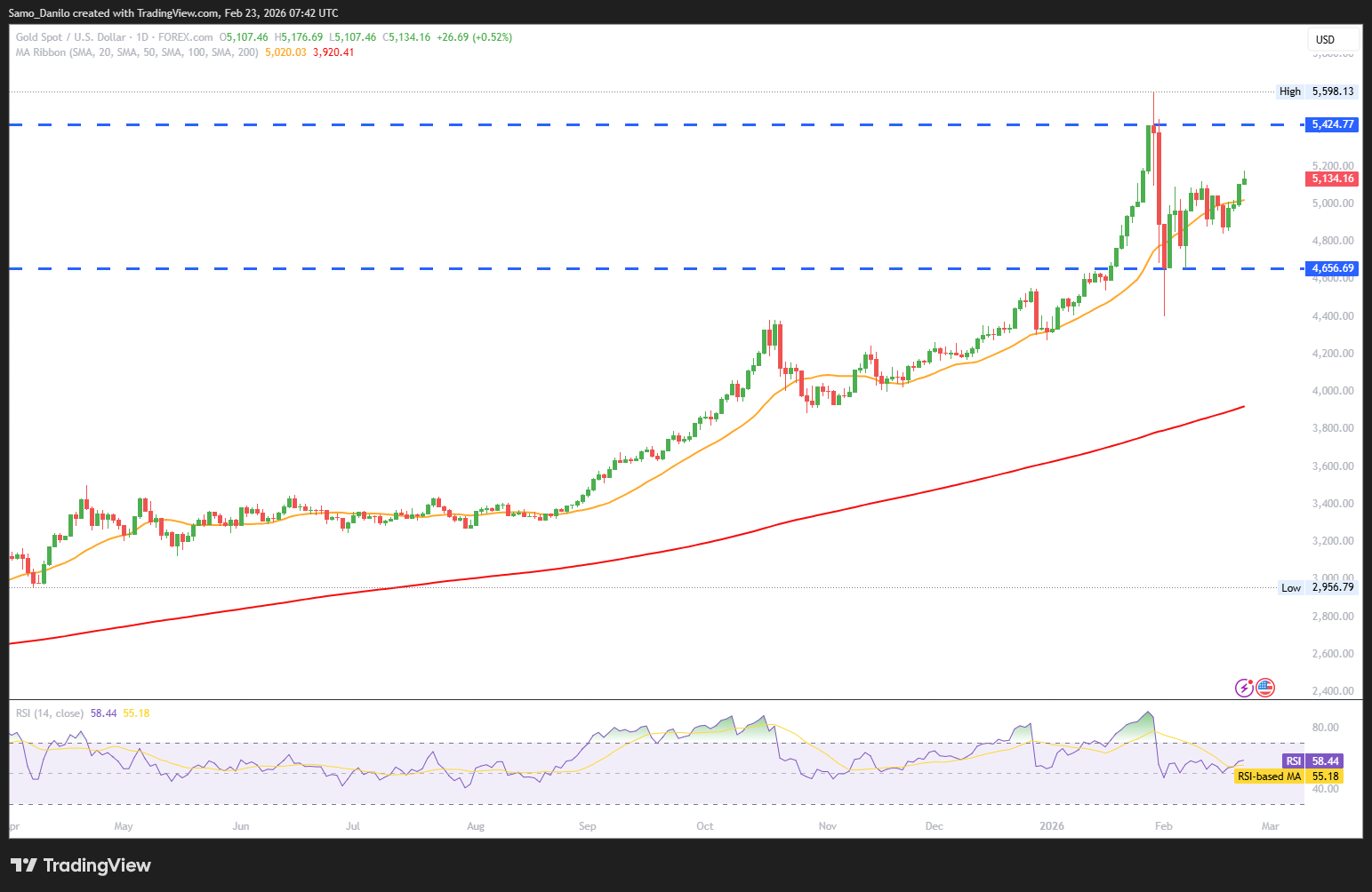 - XAU/USD Price: Gold maintains a bullish bias near its monthly highs as it consolidates above last week’s breakout beyond the $5,100 level. This sustained strength reflects strong underlying demand and signals that buyers remain confident following the recent upside technical confirmation.